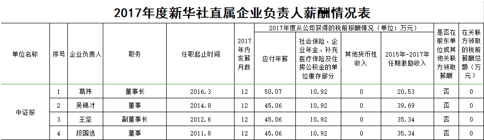 点击查看2017年度新华社直属企业负责人薪酬情况表