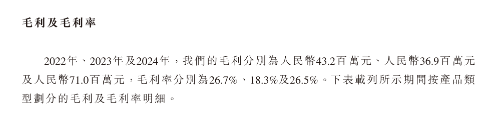 2022年、2023年、2024年,公司毛利率分别为26.7%、18.3%和26.5%。