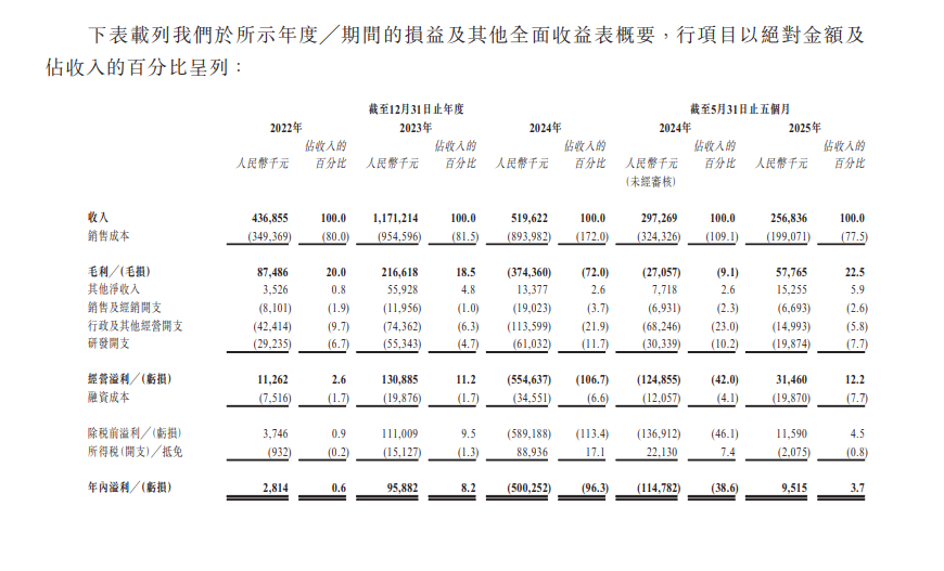 业绩方面,招股书显示,2022年、2023年、2024年及2025年前5个月,天域半导体收入分别为4.37亿元、11.71亿元、5.20亿元、2.57亿元,净利润分别为281.4万元、9588.2万元、-5亿元、951.5万元。