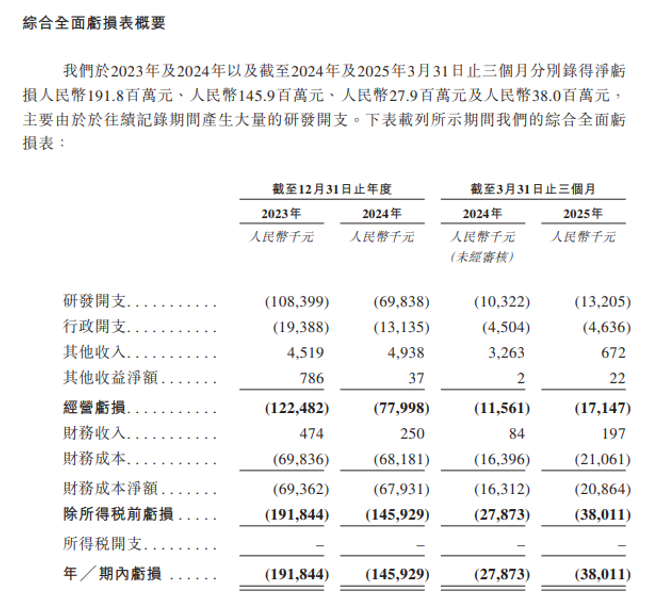 根据招股书,2023年、2024年、2025年一季度,丹诺医药净亏损分别为1.92亿元、1.46亿元及0.38亿元,亏损原因主要由于研发开支较大。