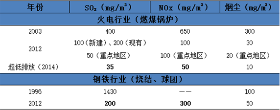 ¡¡¡¡»ðµç¡¢¸ÖÌúÐÐÒµ´óÆøÎÛȾÎïÅŷűê×¼¶Ô±È
