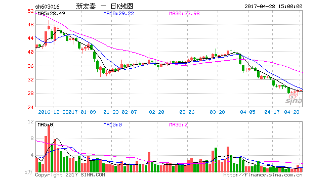 长江商报记者注意到,新宏泰上市一口气拉了14个一字板,到去年11月22日,股价最高达到66.13元,相较8.49元的发行价,涨了6.79倍。然而,自此之后,股价无悬念一路下行,至今年4月27日,创下上市以来的低点27.21元,至4月28日重组停牌前一个交易日,收报28.94元。短短5个月,股价跌了56.24%。