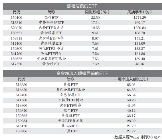 此外,两只巴西ETF、中韩半导体ETF今年以来涨幅也位居前列。