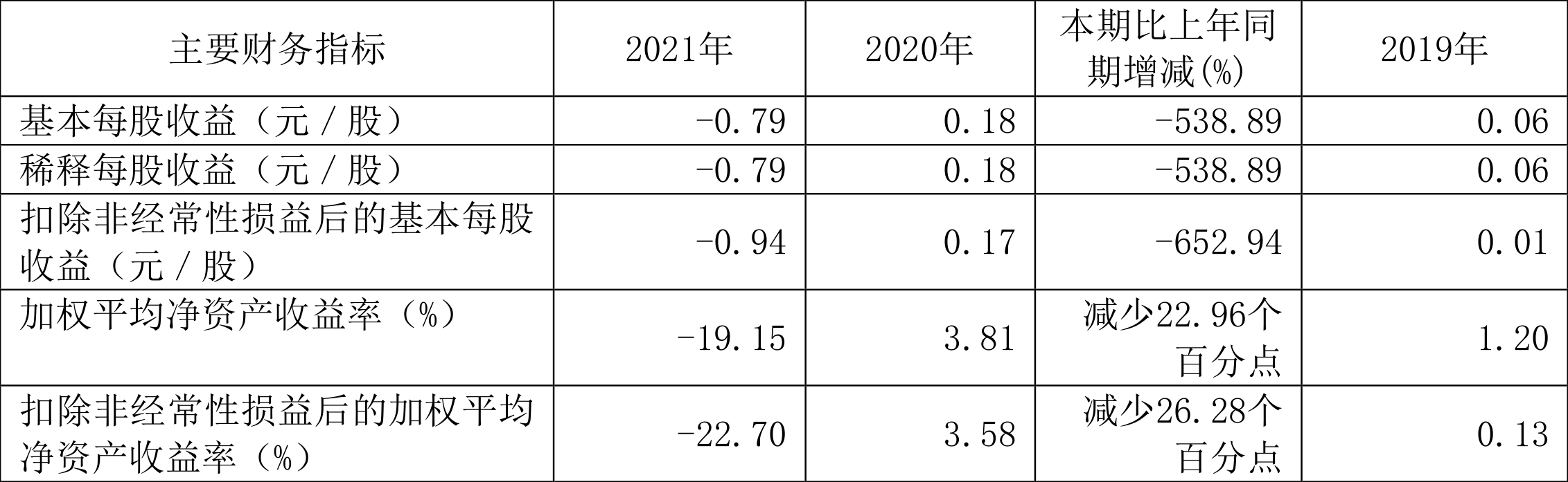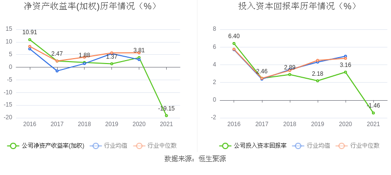 ¡¡¡¡Êý¾ÝÏÔʾ£¬2021Ä깫˾¼ÓȨƽ¾ù¾»×ʲúÊÕÒæÂÊΪ-19.15%£¬½ÏÉÏÄêͬÆÚϽµ22.96¸ö°Ù·Öµã£»¹«Ë¾2021ÄêͶÈë×ʱ¾»Ø±¨ÂÊΪ-1.46%£¬½ÏÉÏÄêͬÆÚϽµ4.62¸ö°Ù·Öµã¡£
