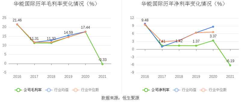 ¡¡¡¡¡¡¡¡2021Ä꣬¹«Ë¾Ã«ÀûÂÊΪ-0.33%£¬Í¬±ÈϽµ17.77¸ö°Ù·Öµã£»¾»ÀûÂÊΪ-6.19%£¬½ÏÉÏÄêͬÆÚϽµ9.56¸ö°Ù·Öµã¡£ÖµµÃ¹Ø×¢µÄÊÇ£¬½üÄêÀ´¹«Ë¾¾»ÀûÂʳ¤ÆÚµÍÓÚÐÐҵƽ¾ùˮƽ¡£