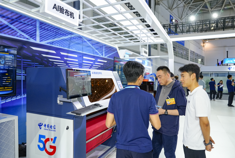 ??中国电信还特别展出了一系列落地福建的智慧工厂项目,现场演示5G智能制鞋生产示范线、AI验布机、AI验盒机等智能设备,让观众直观领略AI技术推动新型工业化、助力数字福建蓬勃发展的新图景。