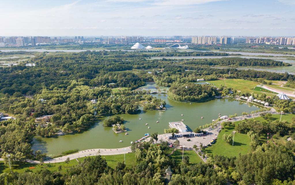 ??游人在哈尔滨太阳岛风景区的太阳湖上游览。新华社记者 王建威 摄