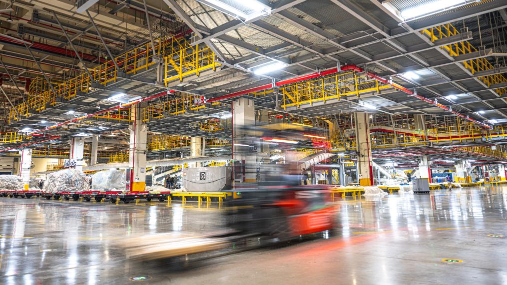 ??凌晨,货物被转运至鄂州花湖国际机场转运中心进行分拣作业。新华社记者肖艺九 摄
