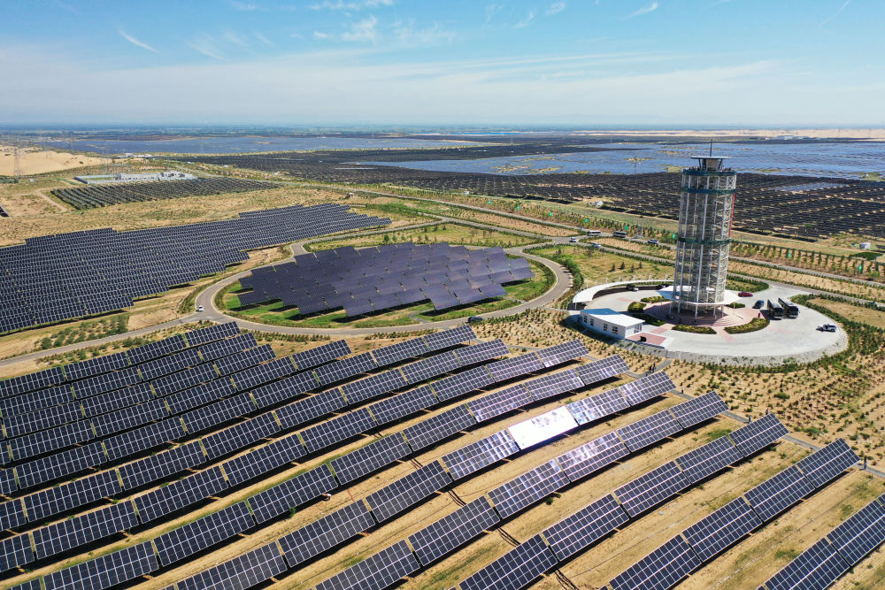??这是2025年7月30日拍摄的内蒙古鄂尔多斯市达拉特旗光伏基地(无人机照片)。新华社记者 李志鹏 摄