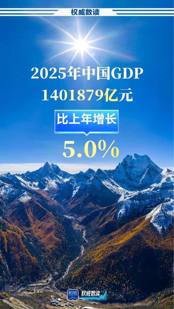 1月19日,国家统计局公布2025年国民经济运行情况。初步核算,2025年,我国国内生产总值(GDP)首次突破140万亿元,达到1401879亿元,按不变价格计算,比上年增长5.0%。这一年中国经济向新向优,预期目标圆满实现,“十四五”胜利收官。