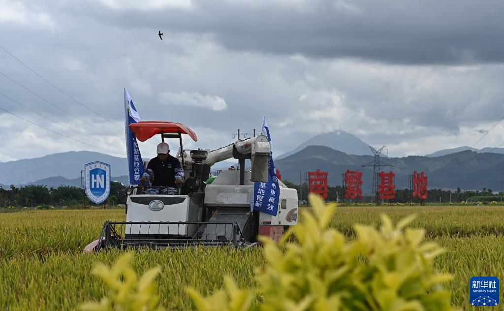¡¡¡¡ÔÚÈýÑÇÊÐÑÂÖÝÇø£¨°ÓÍ·£©ÄÏ·±¹«¹²ÊÔÑé»ùµØÊÔÑéʾ·¶µãµ¾Ì¹¤×÷ÈËÔ±²Ù×÷ÊÕ¸î»úÊÕ¸îË®µ¾£¨2022Äê5ÔÂ6ÈÕÉ㣩¡£Ð»ªÉç¼ÇÕß Ñî¹ÚÓî Éã